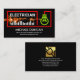A red circuit board powers up and zaps an electrical current to light up the green light bulb. The electrical pulse fires up your job title "electrician" at the top (which you can change the caption remarks to suit your needs). Near the base of the card are your prestigious name and contact details.