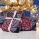 Red lilac on dark blue wrapping paper