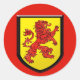 Linda Baysinger Peck's painting of a red, rampant, heraldic, mediaeval lion, on yellow shield.
