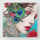 Red Lips and Roses Peacock Abstract Square Wall Clock