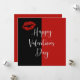Express your love to someone special this Valentine's Day with a simple minimalist card that includes "Happy Valentine's Day" text in modern handwritten script type face with red lips puckered in a kiss. A colorblock background in black and red add contemporary style to the card. The reverse side of the card has a text template with simple text that you can edit as you like with your personal message. This card is a great choice for spouses, boyfriends, girlfriends, partners or anyone with whom you wish to express affection or romance in a simple contemporary fashion.
