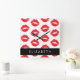 Red Lips, Red Lipstick, Pattern Of Lips, Your Name Square Wall Clock
