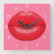 Red Lipstick big pop art lips on girly pink Square Wall Clock
