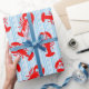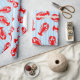 Red Lobster Animal Pattern on Blue Stripes Wrapping Paper