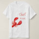 Nautical, summer and sea food theme. A red lobster on a white background. The text: Chef wiht a cool red hand rope style script. Template for your name.