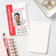 Bright red and white facility entry badge with bold vertical text is ideal for department specific clearance. Easily upload multiple logos and an employee photo. This can hang on a matching lanyard that also holds a company key card. This company badge is versatile for red, white and grey company lanyards. Perfect for engineering, healthcare, or law enforcement facilities where staff identification is important. Perfect for government buildings where employees have different clearances.