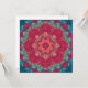 This gorgeous highly detailed mandala was created while being inspired by lotus flowers. The design has beautiful deep red and orange colours set off by blue and teal.