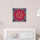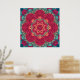 Beautiful, spiritual mandala, drawn while being inspired by lotus flowers, in red and orange with teal teal coloured leaves. The way the colours are used give this inspirational artwork a 3 dimensional look.
