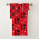 Red LOVE Pattern with Heart Emblems Bath Towel Set