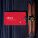 A stylish and personalised design with the graphic image of a small white aeroplane on hot and warm red background colour, to identify your belongings when travelling through the world