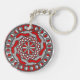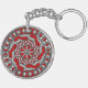 This concentric circle design contains layers of geometric patterns that resemble gears that you might find in modern or even alien machinery, in shades of red and grey.