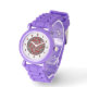 This concentric circle design contains layers of geometric patterns that resemble gears that you might find in modern or even alien machinery, in shades of red and grey. This watch is available in a variety of sizes, colours, and styles, including sizes for both kids and adults.