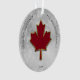 Maple leaf in deep red. Stylized with a faux gold metallic border around the edges. Set on a bokeh snow like background. Personalize with your greetings, name and year in black uppercase font.