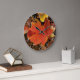 A single red maple leaf on the floor of the forest surrounded by shades of yellow, brown and orange leafs. Perfect for that rustic looking interior.