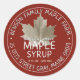 Edit your business name, address, volume of maple syrup and grade. Sugar maple leaf on dark red background with white chalkboard text. Simple white line along border of label.