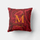 A modern red Marble and Orange Script Throw Pillow with a personalised Monogram and Name. Just click on "Personalise this template" to change the Monogram and Name.