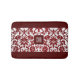Red Maroon and White Damask Pattern Bath Mat