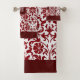 Red Maroon and White Damask Pattern Bath Towel Set