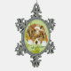 Red Merle Aussie Puppy on Green Leaves Snowflake Pewter Christmas Ornament