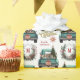 A teal blue pickup truck carries a decorated Holiday tree and gift packages on this cute gift wrapping paper. A red merle Australian Shepherd Dog looks out from the tailgate. A rustic wooden sign on the back bumper says "Christmas Cheer". Your monogram is enclosed within a pretty pine cone and red berry wreath, and stylised gold text says "Merry Christmas". You may also customise the "from the (Name) section.