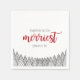 Christmas Party napkins with black graphic trees and the sentiment, "Together is the merriest place to be." Red letters and black trees on a white napkin.