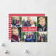 Share warm seasonal greetings with this Merry Christmas holiday card featuring a clean six-photo collage layout. A modern red center panel highlights your holiday message in crisp white type for a timeless, neutral look. Ideal for showcasing family and kids photos with a festive feel. Back includes a coordinating red and white stripe pattern.