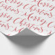 Christmas gift wrapping paper feature modern calligraphy merry Christmas script in red and white.