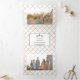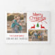 This lovely Christmas trifold holiday card showcases your favourite family photos, red der and a tree and the wish "Merry Christmas” in red typography. Your names are written in a modern font in black and red. The inside panels are covered with a red and green net pattern and family photos. Photography © Storytree Studios, Stanford, CA