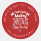 Merry Christmas Calligraphy Script with red background sticker template. Can be used for Holiday cards mailing.