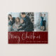 Red Merry Christmas Script 2 Photo Collage Holiday Jigsaw Puzzle
