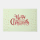 A door mat with a fancy typographical design with a festive font in red which says Merry Christmas.