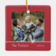 Sweet and simple Christmas photo ornament features a minimalist layout, with your family name and the year in clean, classic serif typeface on a festive red background. A petite bow beneath your photo completes the design. Add a second photo to the reverse side.