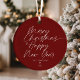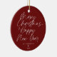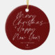 Red Minimalist Modern Script Merry Christmas Ceramic Ornament