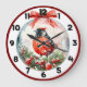 Red Mockingbird Winter Landscape Large Clock
