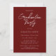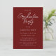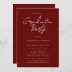 Red Modern Calligraphy Script Graduation Party Invitation Card. Congrats the GRAD! Congratulations on their well-deserved success and celebrate them with this beautiful card. All the texts are pre-arranged for you to personalise easily and quickly with your own details.
