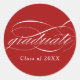 Red Modern Elegant Script Graduation Classic Round Sticker
