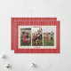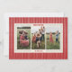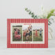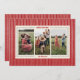 This holiday card features a red striped background framing three customisable photos in this rustic Christmas card with modern farmhouse charm. Customisable greeting reads "Merriest Everything" The back includes a matching striped pattern to complete the unique design.