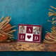 A colourful design featuring 2 family photos full of beautiful memories of dad, in a background of red. Upload your photos to personalise.
