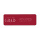 Modern minimalist grad return address label design in red and white. Personalise the template with a graduation year and your return address. © Kimbellished, LLC