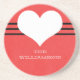 Sweet and charming Modern Heart Coaster featuring a dark red background and a cute heart and striped border. This cute and girly sandstone coaster will protect your furniture and add style to any decor! Customise with the text of your choosing. Click on "Customise" to find additional personalisation options.