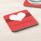 Sweet and charming Modern Heart Coasters featuring a dark red background and a cute heart and striped border. This cute and girly coaster set will protect your furniture and add style to any decor! Customise with the text of your choosing. Click on "Customise" to find additional personalisation options.