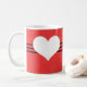 Sweet and charming Modern Heart Mug featuring a dark red background and a cute heart and striped border. This cute and girly mug is perfect for enjoying your favourite hot beverage! Customise with the text of your choosing. Click on "Customise" to find additional personalisation options.