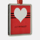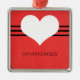 Sweet and charming Modern Heart Ornament featuring a dark red background and a cute heart and striped border. This cute and girly ornament will add style any decor! Customise with the text of your choosing. Click on "Customise" to find additional personalisation options.