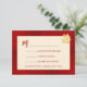 A gold double happiness symbol on a shimmering red background. RSVP Chinese Wedding Card.