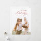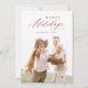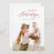 Modern minimalist happy holidays card design features elegant trendy script in red colour, with personalised family photo, simple and unique.