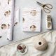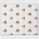 Christmas gift wrapping paper feature modern Merriest Christmas script and pine tips, with personalized family name and two photos in red and pink. simple and elegant.