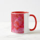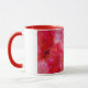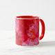 A vibrant blend of red and pink hues creates a dynamic and energetic abstract pattern. The swirling and marbled effect suggests movement and fluidity across the composition.