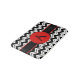 Make a fashion statement with your home decor with this mat monogrammed with your initial. Use in the bath, kitchen, bedroom or any room in the house. The Chevron ziz zag (zizzag) graphic design is one of the hottest art and design trends, and is extremely popular from fashion to home decor. This sophisticated black and white chevron rug is given an eye popping dash of colour with a red circle for personalising with your monogram initial and sits on a black strip with red edges. Easy to customise!
