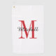 Custom printed golf towel personalised with your name and monogram initial or other custom text. Use the design tools to choose any background colour, edit fonts and colours or upload your own photos to create a unique one of a kind gift for your favourite golfer.