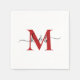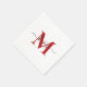 Modern Red Monogram Cocktail Napkin. White. Combo font. Swash.